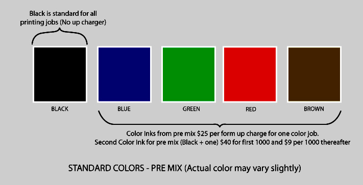 Color InkPre-mixed only (Black is standard - no up charge) |